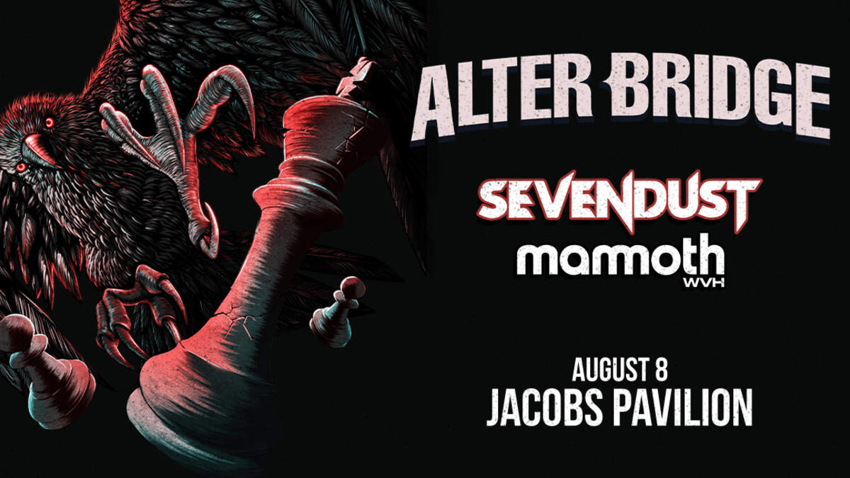 Alter Bridge brings their Pawns & Kings Tour to Jacobs Pavilion on Tuesday, August 8 at 7:00 PM with special guests: Sevendust and Mammoth WVH! For complete details about this show and to grab your tickets, click HERE!