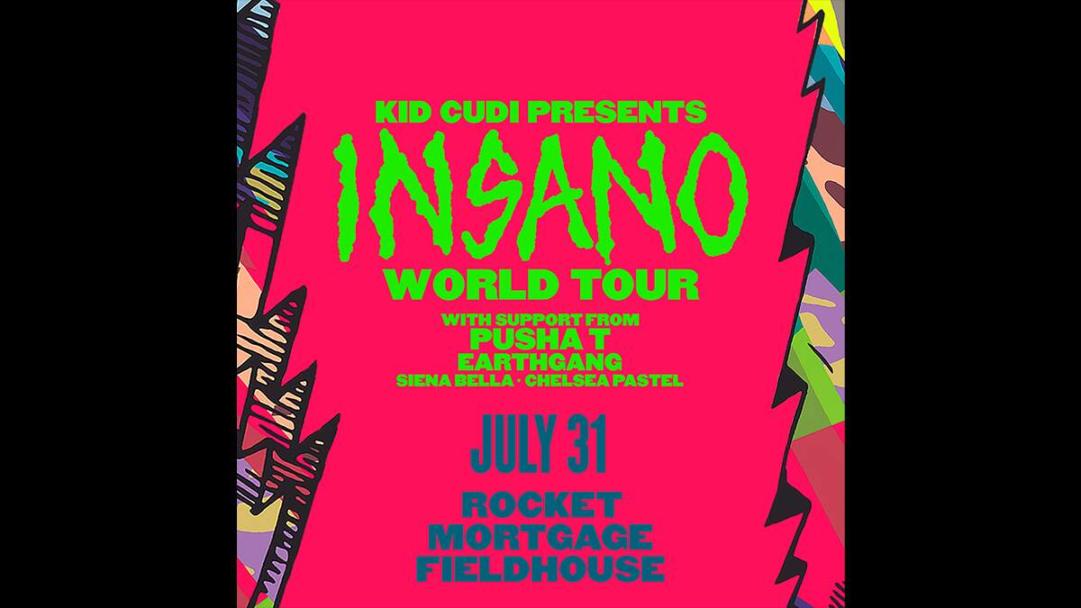 GRAMMY® Award-winning multiplatinum sonic visionary, artist, producer, actor, and director, Kid Cudi brings his Insano World Tour to Rocket Mortgage FieldHouse on Wednesday, July 31 at 7:00 PM with special guests: Pusha T, Earthgang, Siena Bella and Chelsea Pastel! For complete show details and to purchase your tickets, click HERE!
