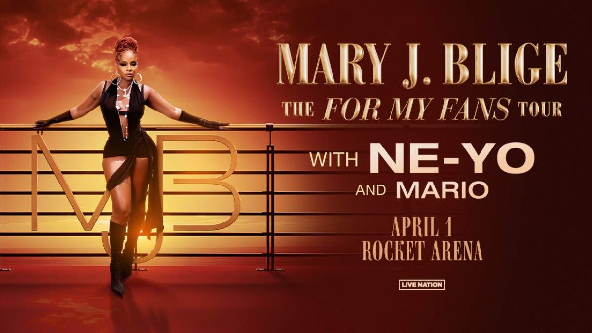 Mary J. Blige brings The For My Fans Tour to Rocket Arena on Tuesday, April 1 at 7:00 PM with special guests: Ne-Yo and Mario! Hear all your favorite hits like: "Family Affair", "Be Without You", "I Can Love You", "Mary Jane", "One" and many more! For complete show details and to purchase your tickets, click HERE!