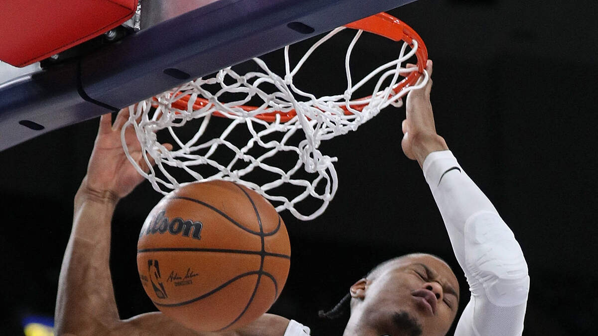 MEMPHIS, TENNESSEE - JANUARY 18: Isaac Okoro #35 of the Cleveland Cavaliers dunks during the first half of the game against the Memphis Grizzlies at FedExForum on January 18, 2023 in Memphis, Tennessee. NOTE TO USER: User expressly acknowledges and agrees that, by downloading and or using this photograph, User is consenting to the terms and conditions of the Getty Images License Agreement. Photo: (Photo by Justin Ford/Getty Images)