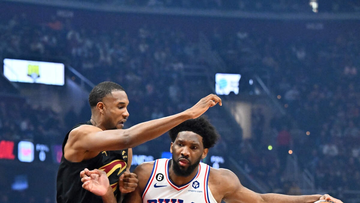CLEVELAND, OHIO - MARCH 15: Joel Embiid #21 of the Philadelphia 76ers drives to the basket around Evan Mobley #4 of the Cleveland Cavaliers during the first half of the game at Rocket Mortgage Fieldhouse on March 15, 2023 in Cleveland, Ohio. NOTE TO USER: User expressly acknowledges and agrees that, by downloading and or using this photograph, User is consenting to the terms and conditions of the Getty Images License Agreement.Photo: (Photo by Jason Miller/Getty Images)